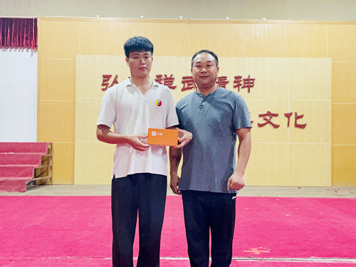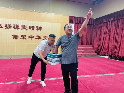 首席代表兼首席教练王正浪(右一)抽取特等奖1名并为获奖者颁奖。