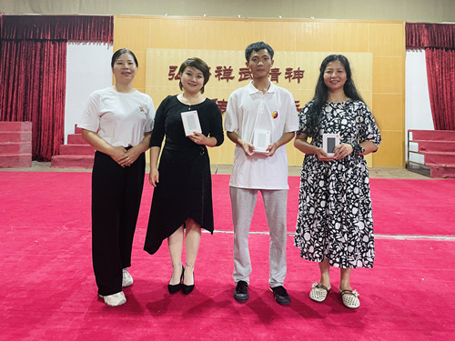 古琴顾问谢倬老师(左一)抽取三等奖5名并为获奖者颁奖