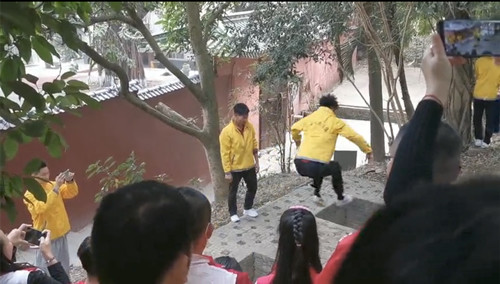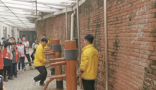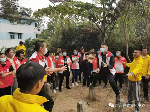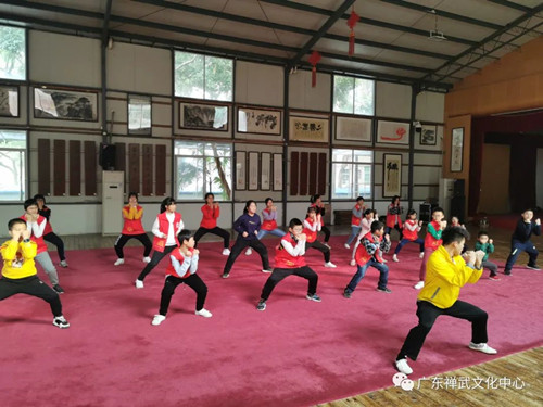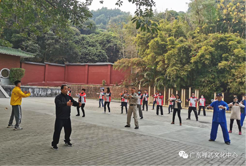 1月16日,广州市机关党员志愿者小红棉服务队、广州市新时代文明实践·童心向党志愿服务队一行到访中华文化传承基地·禅武中心,参观传统功夫训练场地并体验传统功夫和养生功夫。