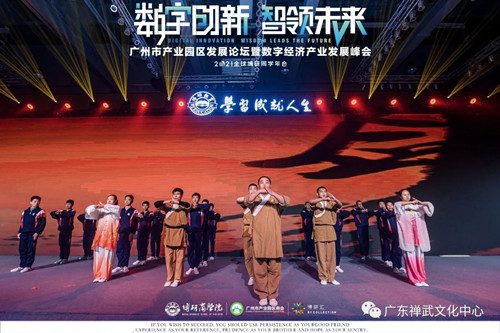 2021年1月10日,由博研商学院主办的“数字创新·智领未来”广州市产业园区发展论坛暨数字经济产业发展峰会在保利世贸博览馆拉开序幕,禅武教练团携“中华优秀传统文化进校园”学校学生代表助力年会开场演出。