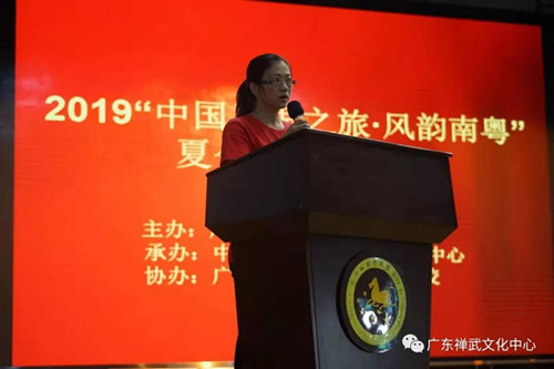 来自波黑的贺轶惺代表夏令营学员发言。他分别向活动主、承办方和本次研修班的老师、教练等表示了感谢。她说,短短十几天的学习让她感触最深的就是此次夏令营跟以往参加的夏令营的不同,更加感受到中华文化和禅武功夫的深厚底蕴,并且很自豪自己是中国人,并表示回到住在国之后要把这次自己的所学教给更多的人,让中华文化得以发扬光大。
