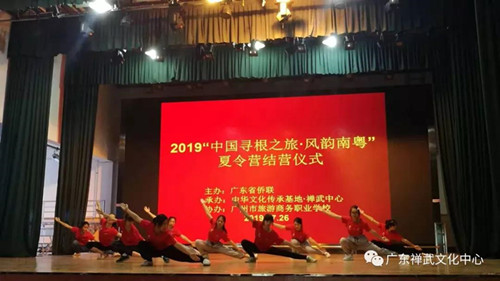 2019年7月16日至28日,由广东省侨联主办,中华文化传承基地•禅武中心承办,广州旅游商务职业学校协办的2019“中国寻根之旅•风韵南粤”禅武营于2019年7月28日在广州旅游商务职业学校圆满落下帷幕。
