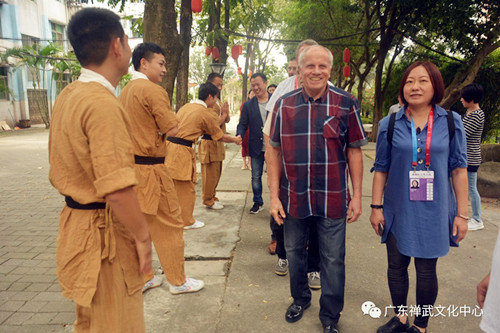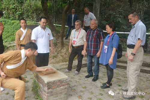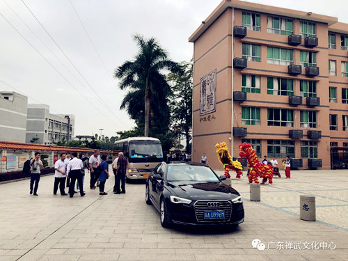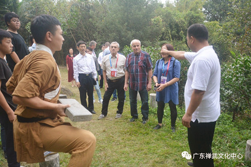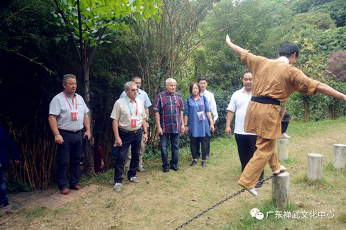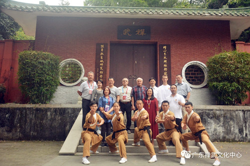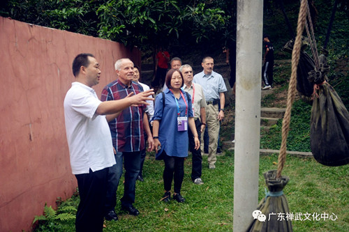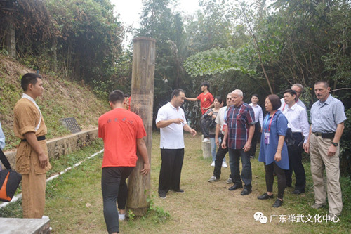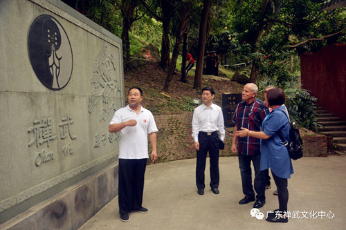 在禅武中心副主任王正浪、广东省华侨职业技术学校国际部主任龙湘芳、总教练张彪和副总教练梁福建等教练的带领下一行人来到禅武广场。