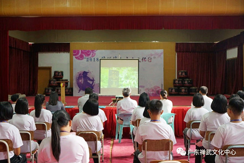 10月11日下午,“2018华侨华人广东文化行——禅武研修班”在我校举行。广东省侨办文化教育处副处长王奕华,广东省华侨职业技术学校党委副书记、纪委书记何博欣,学校国际部龙湘芳主任、禅武中心王正浪师傅等出席典礼,来自泰国和巴拿马的30名学员参加了开班典礼。
