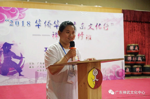 来自泰国四色菊府的丁洁代表全体学员表达了来到祖籍国学习优秀中华文化的激动和兴奋之情,言语中无不透露着对中华武术的热爱,并承诺在今后的一个月里努力学习,承担起传播中华文化的重任。
