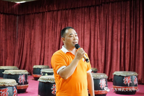 王正浪师傅代表禅武中心在仪式上致辞,热情欢迎法国、美国、巴拿马、香港等四个国家和地区华裔青少年的到来。他简要总结了过去几天营员们在各分营里的学习收获,以及在禅武中心一天半以来的学习情况,肯定了营员们在舞狮等禅武功夫学习方面的认真态度和飞速进步。他感谢各级侨务部门和组团方对禅武中心的认可、信任和喜爱,并预祝接下来