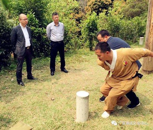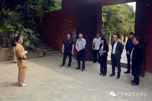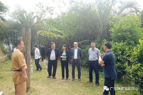 2018年4月2日,越秀区政府办公室主任邹卫红、调研员蔡定基、区教育局局长陈军、区文化体育局局长杨卫国一行七人莅临中华文化传承基地﹒广东禅武文化中心考察调研。禅武国际联盟主席释行鸿、禅武中心主任王正浪、总教练张彪、副总教练刘剑恒和黄英豪接待了调研团一行。