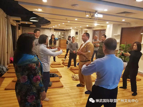 2017年12月23日,禅武中心首席教官王正浪师傅,带领禅武中心实习总教练梁福建教练走进位于荔湾区沙面的觉心斋,在觉心斋罗燕女士的精心安排下,进行了一场以禅武八段锦养生功法为主题的公益讲座及教学。