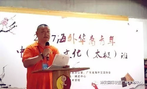 2017年9月13日上午,由广东省人民政府侨务办公室、广东省海外交流协会主办,中华文化传承基地·禅武中心、广东省华侨职业技术学校承办的“2017海外华裔青年中华传统文化(太极)班”在禅武文化馆举行开班典礼。广东省侨办文教处副处长王奕华、广东省华侨职业技术学校党组副书记、纪委书记何博欣,禅武中心副主任龙湘芳、王正浪以及太极班全体师生共约50人出席了典礼。