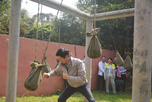 在张彪总教练的带领下,干部学员们亲身学习体验了传统训练器材一线穿、丢沙包、马步桩等项目。禅武中心教练还向学员们做了详细的示范,亦不忘提醒干部学员体验各个项目时需要注意的安全事项。精彩的户外体验让干部学员对禅武活动产生了浓厚的兴趣,迫不及待希望学习禅武功夫。
