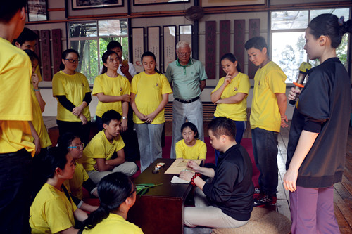 2015年4月,菲律宾学员在禅武中心文化馆内学习体验中国书法、香道以及民乐陶笛。老师细心讲解,并亲自示范。学员也动手参与其中。在书法课上,全部学员都创作了属于自己的作品。学员中有很多的初学者,但是他们的创作成果却毫不逊色。