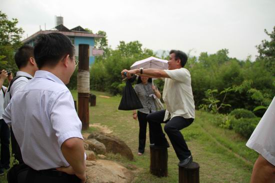 ![]() 梁桂全院长体验马步桩上卷沙包