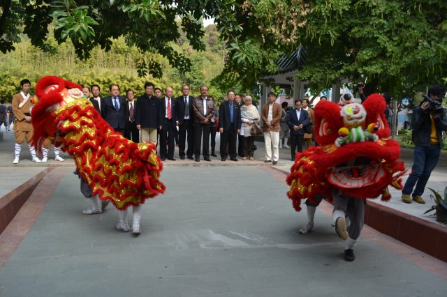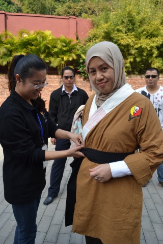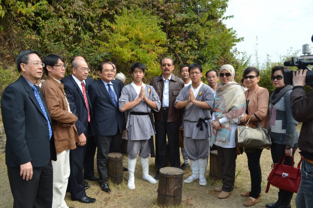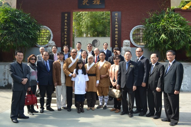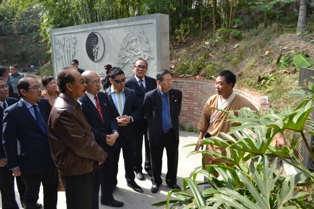 2011年12月20日上午,马来西亚亚庇中华工商总会商业考察团一行40人在马来西亚沙巴州州元首敦拿督斯里邦里玛哈芝佐哈马希鲁丁先生及夫人的带领下参观禅武中心,中国华文教育基金会左志强副理事长、广东省侨办文化教育宣传处林克风处长、广东省华侨职业技术学校张侃校长、禅武中心朱振武校长以及禅武文化研修班60多名各国学员等出席接待。