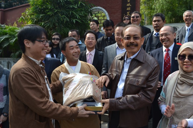 亚庇中华工商总会商业考察团向禅武中心赠送礼物